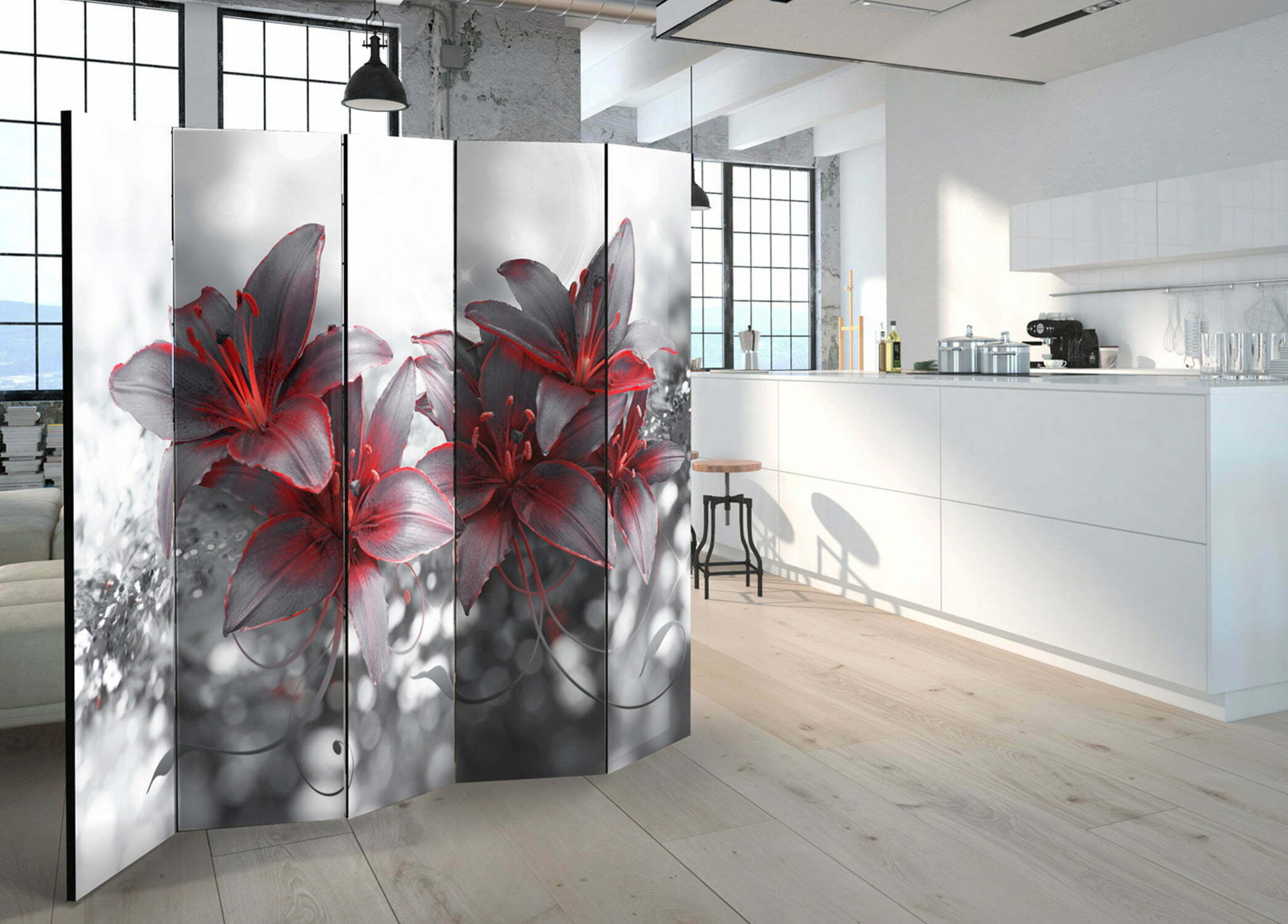 Dekoratives Paravent “Shadow of Passion II [Room Dividers]” ist ein besonderes Schmuckstück für die modernen Inneräume. 5-teilig, hergestellt aus Holz und beidseitig bedrucktes Paravent teilt nicht nur diskret den Raum sonder kreiert auch in dem Raum ein fabelhaftes Arrangement. Perfekte Herstellung sowie originelle Motive in der Full HD Druckqualität verursachen, dass die Zimmerparavents jedem Raum einen einmaligen Charme verleihen. Die dekorativen Paravents für die Wohnung, dass ist mit Sicherheit eine originelle Idee für die Dekoration des Innenraumes. Es lohnt sich ihre praktische Anwendung zu erwähnen – die Zimmerparavents kann man z.B. zwecks der Kachierung des Wäschetrockners nutzen. Das Paravent ist eine sehr originelle Dekoration von Räumen, die man nutzen kann, sowohl in der Wohnung wie auch in einem Atelier z.B. im Friseursalon, Arztpraxis oder im Buchhaltungsbüro.