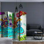Dekoratives Paravent “Skateboard team II [Room Dividers]” ist ein besonderes Schmuckstück für die modernen Inneräume. 5-teilig, hergestellt aus Holz und beidseitig bedrucktes Paravent teilt nicht nur diskret den Raum sonder kreiert auch in dem Raum ein fabelhaftes Arrangement. Perfekte Herstellung sowie originelle Motive in der Full HD Druckqualität verursachen, dass die Zimmerparavents jedem Raum einen einmaligen Charme verleihen. Die dekorativen Paravents für die Wohnung, dass ist mit Sicherheit eine originelle Idee für die Dekoration des Innenraumes. Es lohnt sich ihre praktische Anwendung zu erwähnen – die Zimmerparavents kann man z.B. zwecks der Kachierung des Wäschetrockners nutzen. Das Paravent ist eine sehr originelle Dekoration von Räumen, die man nutzen kann, sowohl in der Wohnung wie auch in einem Atelier z.B. im Friseursalon, Arztpraxis oder im Buchhaltungsbüro.