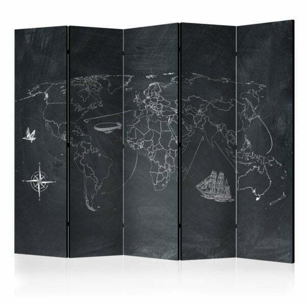 Dekoratives Paravent “Small travel. Large travel II [Room Dividers]” ist ein besonderes Schmuckstück für die modernen Inneräume. 5-teilig, hergestellt aus Holz und beidseitig bedrucktes Paravent teilt nicht nur diskret den Raum sonder kreiert auch in dem Raum ein fabelhaftes Arrangement. Perfekte Herstellung sowie originelle Motive in der Full HD Druckqualität verursachen, dass die Zimmerparavents jedem Raum einen einmaligen Charme verleihen. Die dekorativen Paravents für die Wohnung, dass ist mit Sicherheit eine originelle Idee für die Dekoration des Innenraumes. Es lohnt sich ihre praktische Anwendung zu erwähnen – die Zimmerparavents kann man z.B. zwecks der Kachierung des Wäschetrockners nutzen. Das Paravent ist eine sehr originelle Dekoration von Räumen, die man nutzen kann, sowohl in der Wohnung wie auch in einem Atelier z.B. im Friseursalon, Arztpraxis oder im Buchhaltungsbüro.