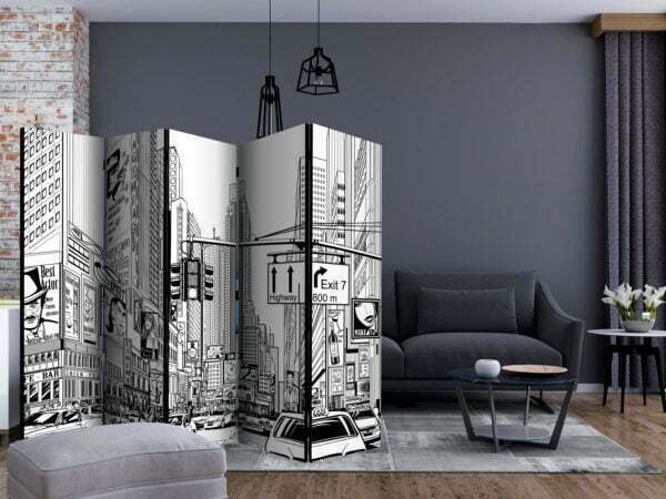 Dekoratives Paravent “Street in New York city II [Room Dividers]” ist ein besonderes Schmuckstück für die modernen Inneräume. 5-teilig, hergestellt aus Holz und beidseitig bedrucktes Paravent teilt nicht nur diskret den Raum sonder kreiert auch in dem Raum ein fabelhaftes Arrangement. Perfekte Herstellung sowie originelle Motive in der Full HD Druckqualität verursachen, dass die Zimmerparavents jedem Raum einen einmaligen Charme verleihen. Die dekorativen Paravents für die Wohnung, dass ist mit Sicherheit eine originelle Idee für die Dekoration des Innenraumes. Es lohnt sich ihre praktische Anwendung zu erwähnen – die Zimmerparavents kann man z.B. zwecks der Kachierung des Wäschetrockners nutzen. Das Paravent ist eine sehr originelle Dekoration von Räumen, die man nutzen kann, sowohl in der Wohnung wie auch in einem Atelier z.B. im Friseursalon, Arztpraxis oder im Buchhaltungsbüro.