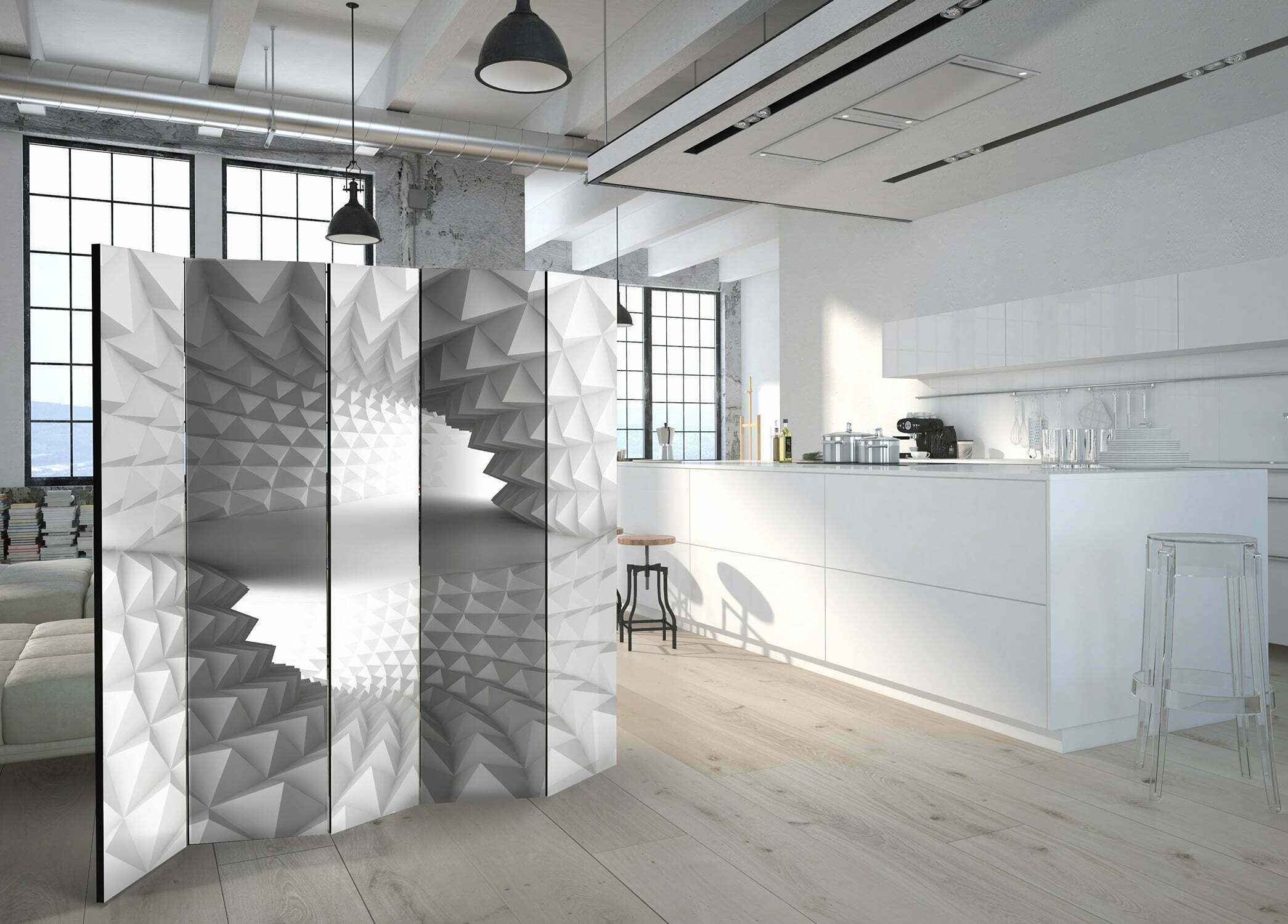 Dekoratives Paravent “Structural Tunnel II [Room Dividers]” ist ein besonderes Schmuckstück für die modernen Inneräume. 5-teilig, hergestellt aus Holz und beidseitig bedrucktes Paravent teilt nicht nur diskret den Raum sonder kreiert auch in dem Raum ein fabelhaftes Arrangement. Perfekte Herstellung sowie originelle Motive in der Full HD Druckqualität verursachen, dass die Zimmerparavents jedem Raum einen einmaligen Charme verleihen. Die dekorativen Paravents für die Wohnung, dass ist mit Sicherheit eine originelle Idee für die Dekoration des Innenraumes. Es lohnt sich ihre praktische Anwendung zu erwähnen – die Zimmerparavents kann man z.B. zwecks der Kachierung des Wäschetrockners nutzen. Das Paravent ist eine sehr originelle Dekoration von Räumen, die man nutzen kann, sowohl in der Wohnung wie auch in einem Atelier z.B. im Friseursalon, Arztpraxis oder im Buchhaltungsbüro.