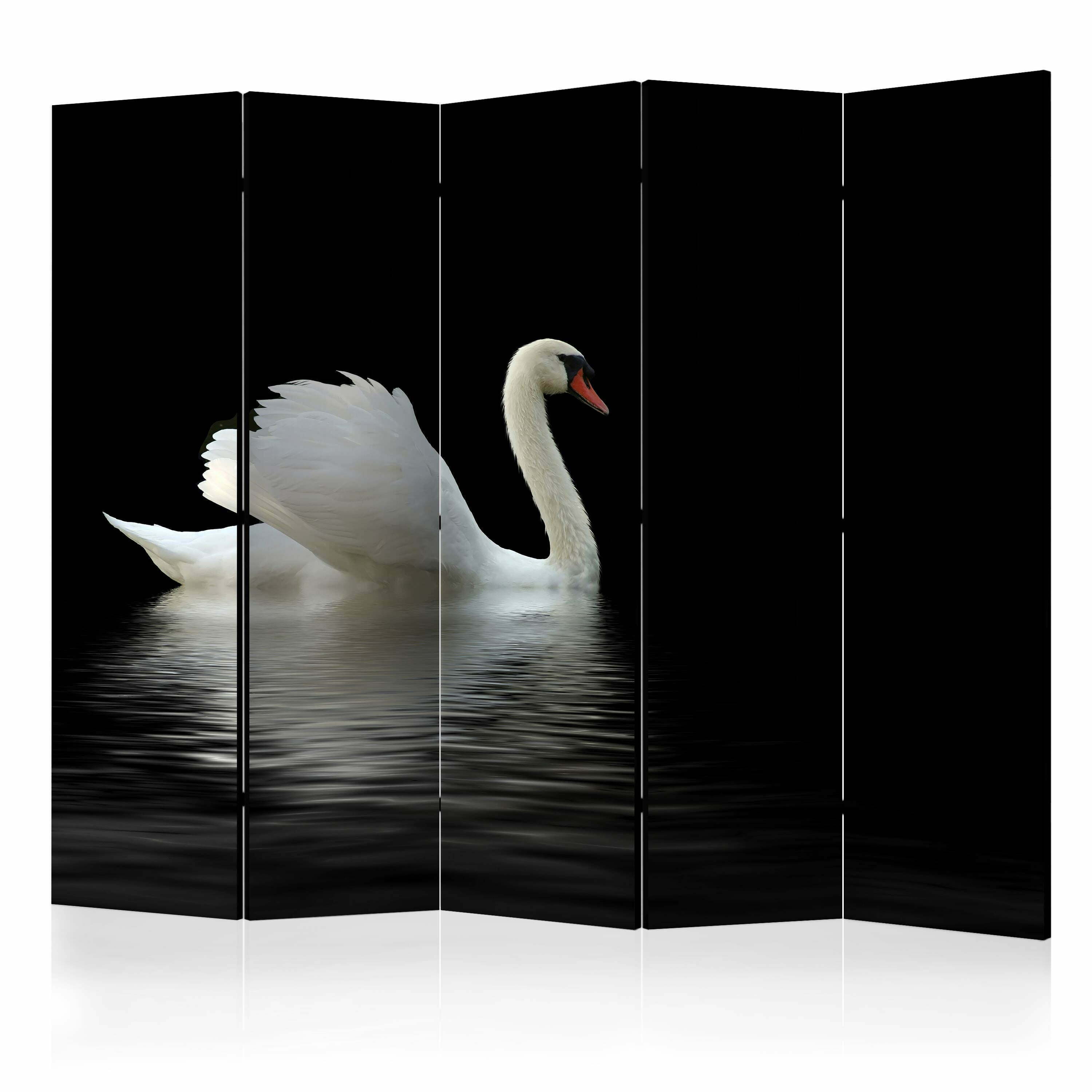 5-teiliges Paravent – swan (black and white) II [Room Dividers]