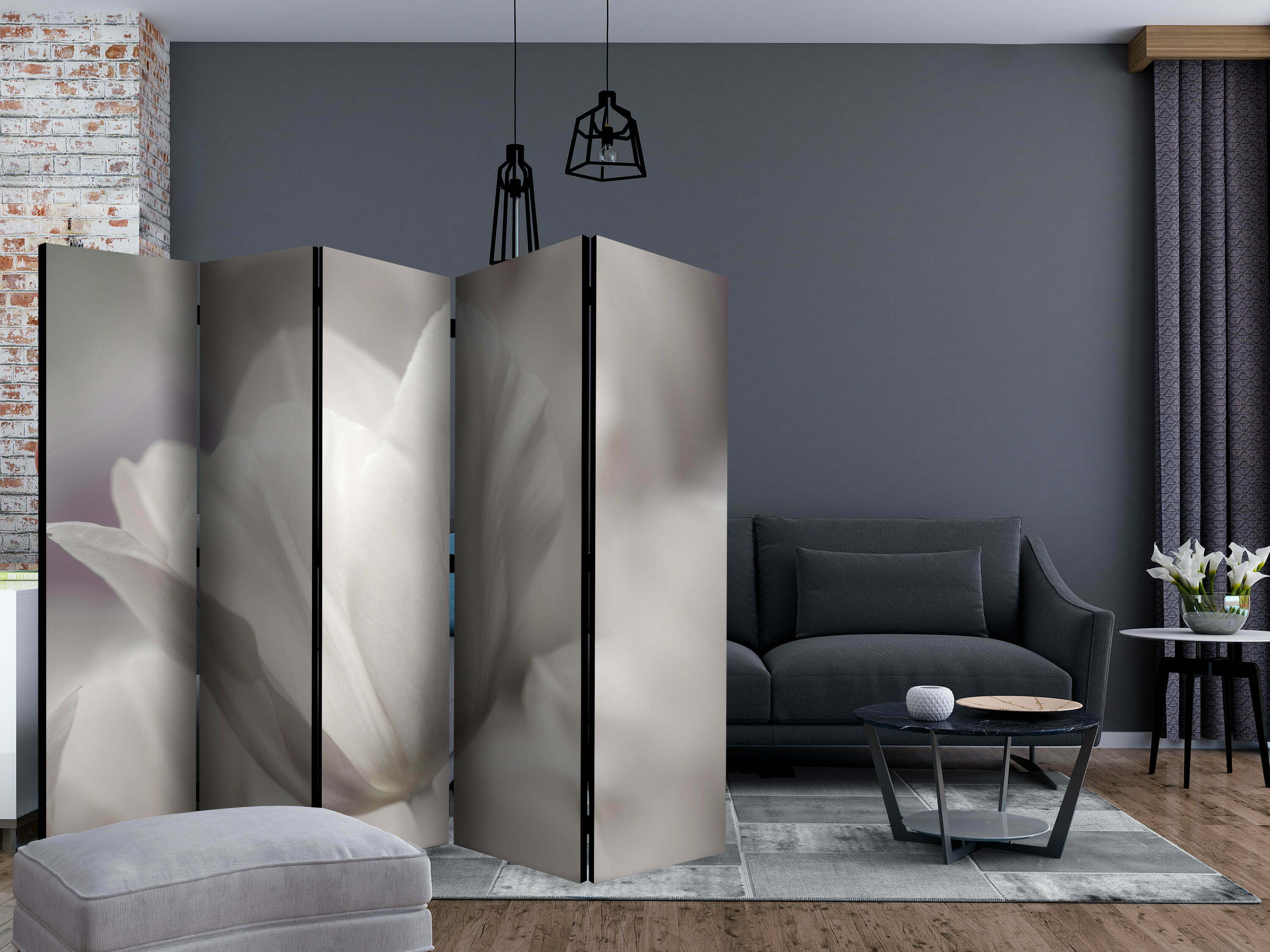 5-teiliges Paravent – Tulip – black and white photo II [Room Dividers]