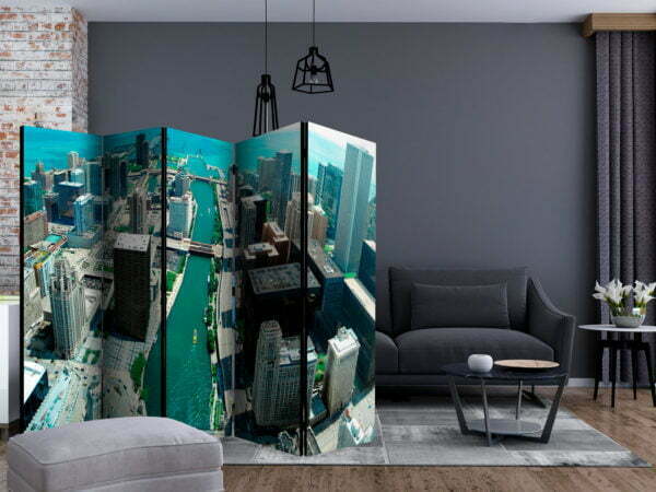 Dekoratives Paravent “Urban architecture of Chicago II [Room Dividers]” ist ein besonderes Schmuckstück für die modernen Inneräume. 5-teilig, hergestellt aus Holz und beidseitig bedrucktes Paravent teilt nicht nur diskret den Raum sonder kreiert auch in dem Raum ein fabelhaftes Arrangement.