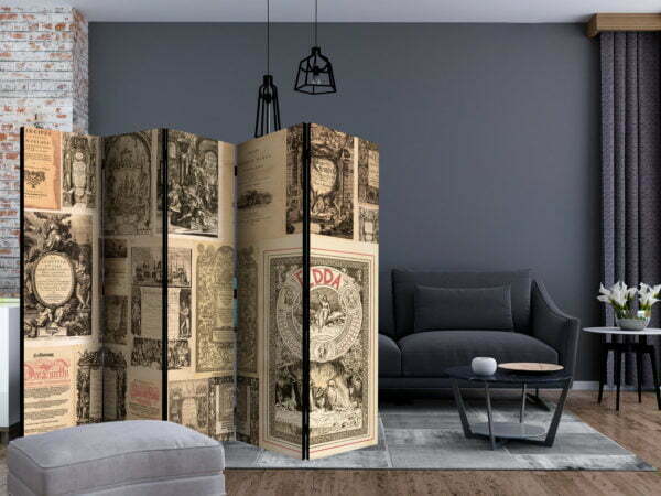 Dekoratives Paravent “Vintage Books II [Room Dividers]” ist ein besonderes Schmuckstück für die modernen Inneräume. 5-teilig, hergestellt aus Holz und beidseitig bedrucktes Paravent teilt nicht nur diskret den Raum sonder kreiert auch in dem Raum ein fabelhaftes Arrangement. Perfekte Herstellung sowie originelle Motive in der Full HD Druckqualität verursachen, dass die Zimmerparavents jedem Raum einen einmaligen Charme verleihen. Die dekorativen Paravents für die Wohnung, dass ist mit Sicherheit eine originelle Idee für die Dekoration des Innenraumes. Es lohnt sich ihre praktische Anwendung zu erwähnen – die Zimmerparavents kann man z.B. zwecks der Kachierung des Wäschetrockners nutzen. Das Paravent ist eine sehr originelle Dekoration von Räumen, die man nutzen kann, sowohl in der Wohnung wie auch in einem Atelier z.B. im Friseursalon, Arztpraxis oder im Buchhaltungsbüro.