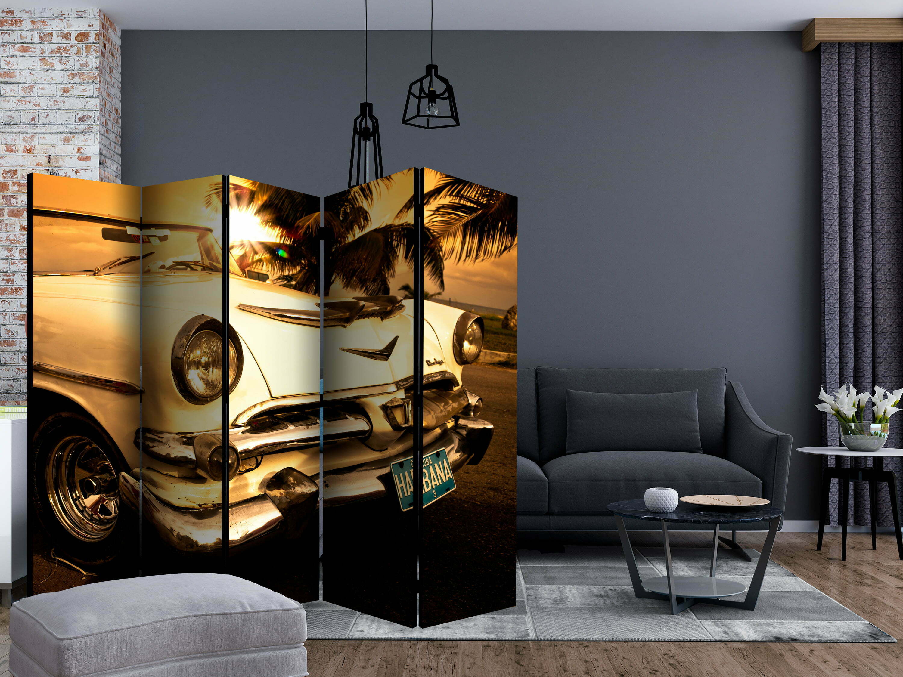 Dekoratives Paravent “Viva Havana! II [Room Dividers]” ist ein besonderes Schmuckstück für die modernen Inneräume. 5-teilig, hergestellt aus Holz und beidseitig bedrucktes Paravent teilt nicht nur diskret den Raum sonder kreiert auch in dem Raum ein fabelhaftes Arrangement. Perfekte Herstellung sowie originelle Motive in der Full HD Druckqualität verursachen, dass die Zimmerparavents jedem Raum einen einmaligen Charme verleihen. Die dekorativen Paravents für die Wohnung, dass ist mit Sicherheit eine originelle Idee für die Dekoration des Innenraumes. Es lohnt sich ihre praktische Anwendung zu erwähnen – die Zimmerparavents kann man z.B. zwecks der Kachierung des Wäschetrockners nutzen. Das Paravent ist eine sehr originelle Dekoration von Räumen, die man nutzen kann, sowohl in der Wohnung wie auch in einem Atelier z.B. im Friseursalon, Arztpraxis oder im Buchhaltungsbüro.