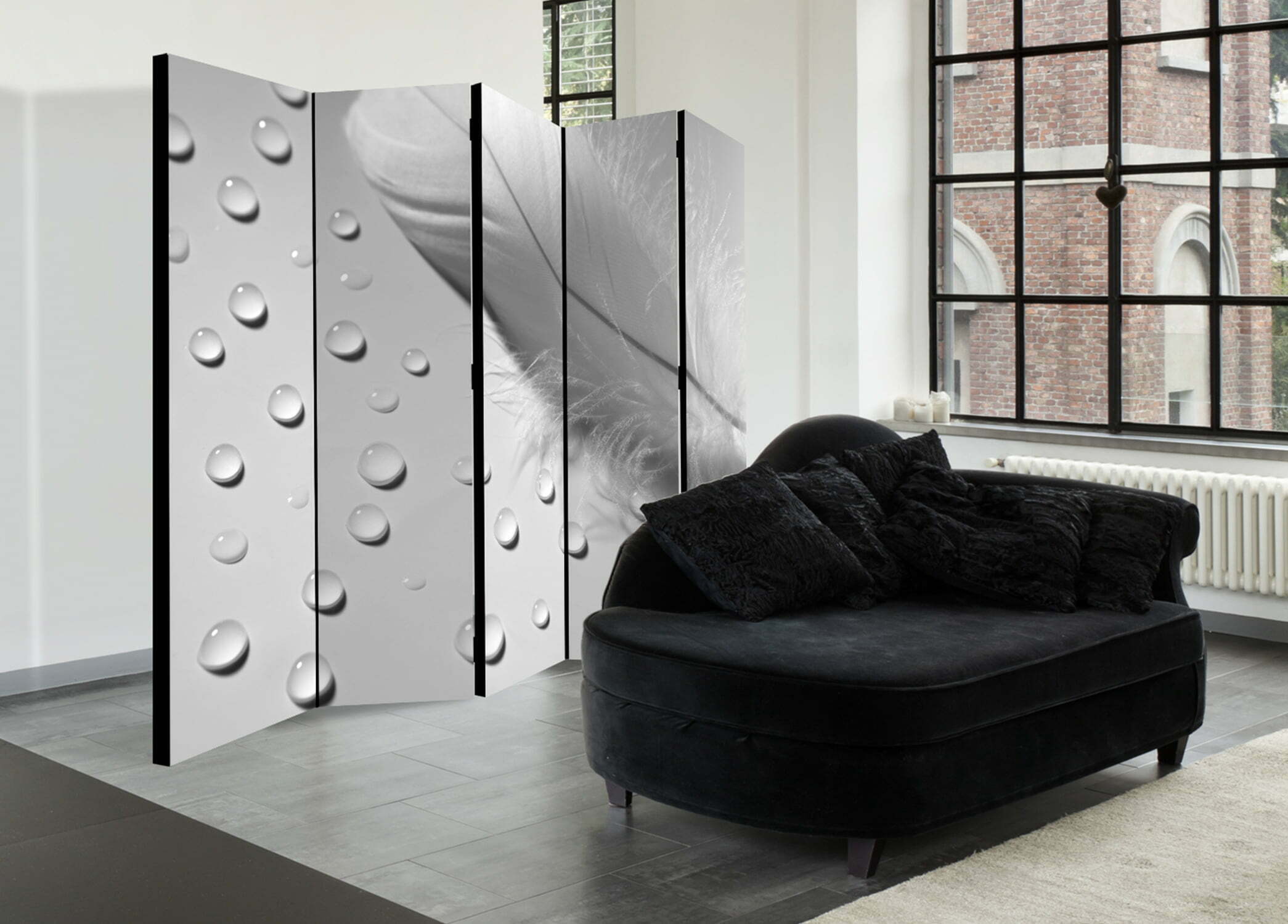 5-teiliges Paravent – White Feather II [Room Dividers]