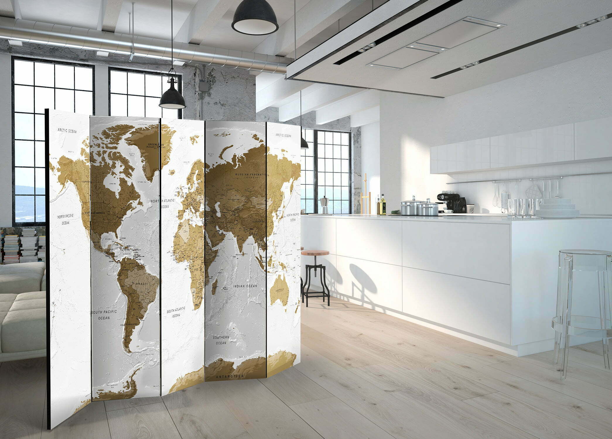 Dekoratives Paravent “White Oceans [Room Dividers]” ist ein besonderes Schmuckstück für die modernen Inneräume. 5-teilig, hergestellt aus Holz und beidseitig bedrucktes Paravent teilt nicht nur diskret den Raum sonder kreiert auch in dem Raum ein fabelhaftes Arrangement. Perfekte Herstellung sowie originelle Motive in der Full HD Druckqualität verursachen, dass die Zimmerparavents jedem Raum einen einmaligen Charme verleihen. Die dekorativen Paravents für die Wohnung, dass ist mit Sicherheit eine originelle Idee für die Dekoration des Innenraumes. Es lohnt sich ihre praktische Anwendung zu erwähnen – die Zimmerparavents kann man z.B. zwecks der Kachierung des Wäschetrockners nutzen. Das Paravent ist eine sehr originelle Dekoration von Räumen, die man nutzen kann, sowohl in der Wohnung wie auch in einem Atelier z.B. im Friseursalon, Arztpraxis oder im Buchhaltungsbüro.