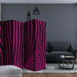 Dekoratives Paravent “Zebra pattern (violet) II [Room Dividers]” ist ein besonderes Schmuckstück für die modernen Inneräume. 5-teilig, hergestellt aus Holz und beidseitig bedrucktes Paravent teilt nicht nur diskret den Raum sonder kreiert auch in dem Raum ein fabelhaftes Arrangement. Perfekte Herstellung sowie originelle Motive in der Full HD Druckqualität verursachen, dass die Zimmerparavents jedem Raum einen einmaligen Charme verleihen. Die dekorativen Paravents für die Wohnung, dass ist mit Sicherheit eine originelle Idee für die Dekoration des Innenraumes. Es lohnt sich ihre praktische Anwendung zu erwähnen – die Zimmerparavents kann man z.B. zwecks der Kachierung des Wäschetrockners nutzen. Das Paravent ist eine sehr originelle Dekoration von Räumen, die man nutzen kann, sowohl in der Wohnung wie auch in einem Atelier z.B. im Friseursalon, Arztpraxis oder im Buchhaltungsbüro.