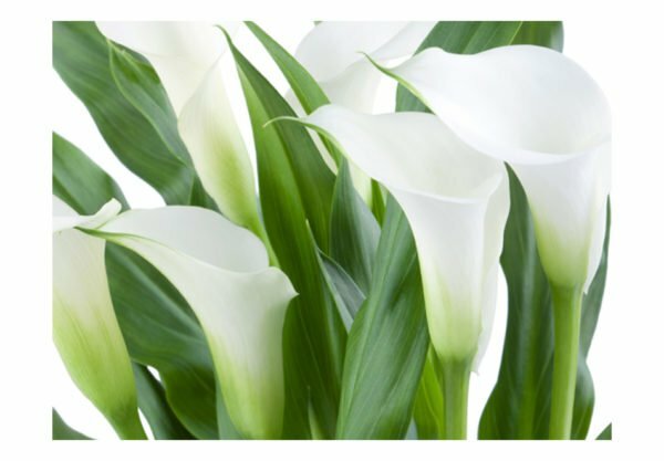 Widerstandsfähige, wasserabweisende und kratzfeste Vliestapete “Blumenstrauß – Callas” zum Anbringen an die Wand. Fototapete “Blumenstrauß – Callas” mit dem inspirierenden Motiv wird zum effektiven Zimmerschmuck jeden Raumes.