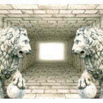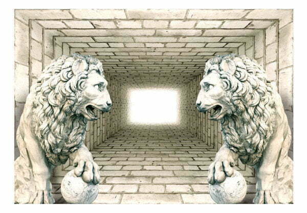 Widerstandsfähige, wasserabweisende und kratzfeste Vliestapete “Chamber of lions” zum Anbringen an die Wand. Fototapete “Chamber of lions” mit dem inspirierenden Motiv wird zum effektiven Zimmerschmuck jeden Raumes.