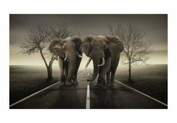 Widerstandsfähige, wasserabweisende und kratzfeste Vliestapete “City of elephants” zum Anbringen an die Wand. Fototapete “City of elephants” mit dem inspirierenden Motiv wird zum effektiven Zimmerschmuck jeden Raumes.