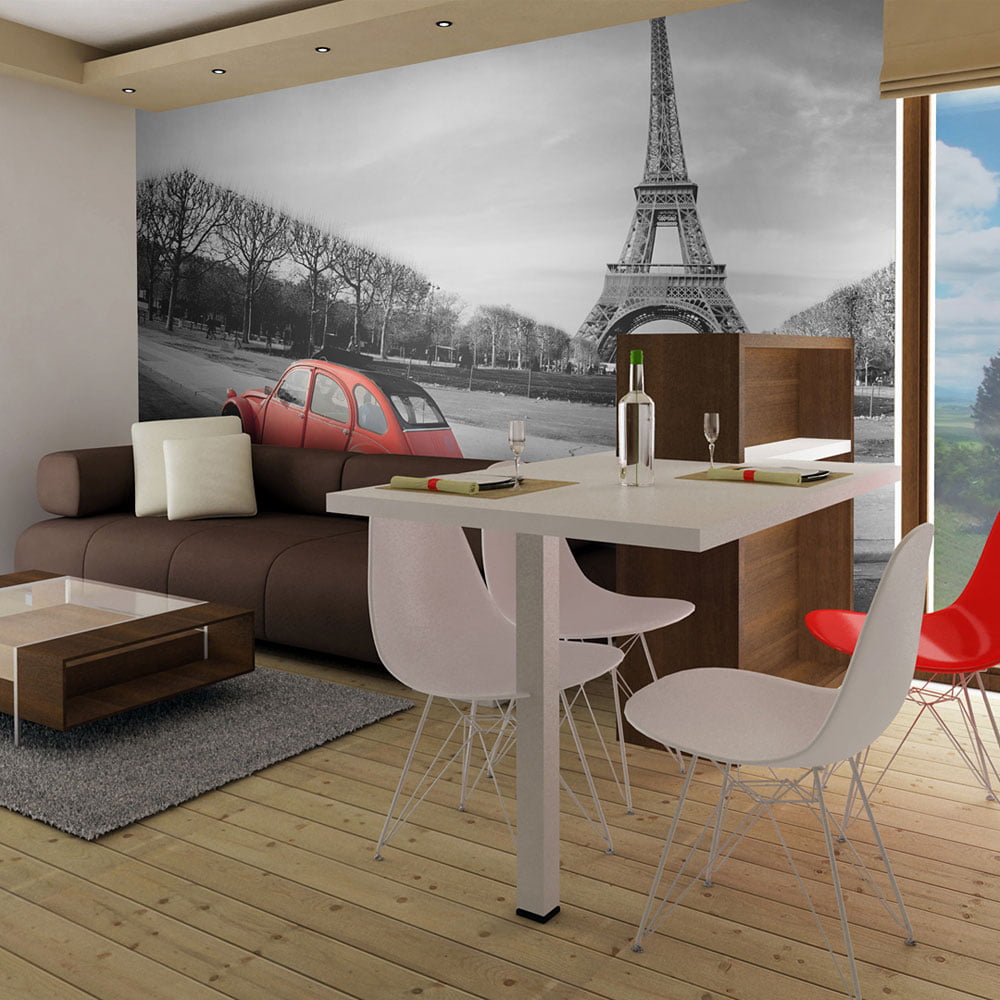 Fototapete – Der Eiffelturm und ein kleiner, roter Wagen