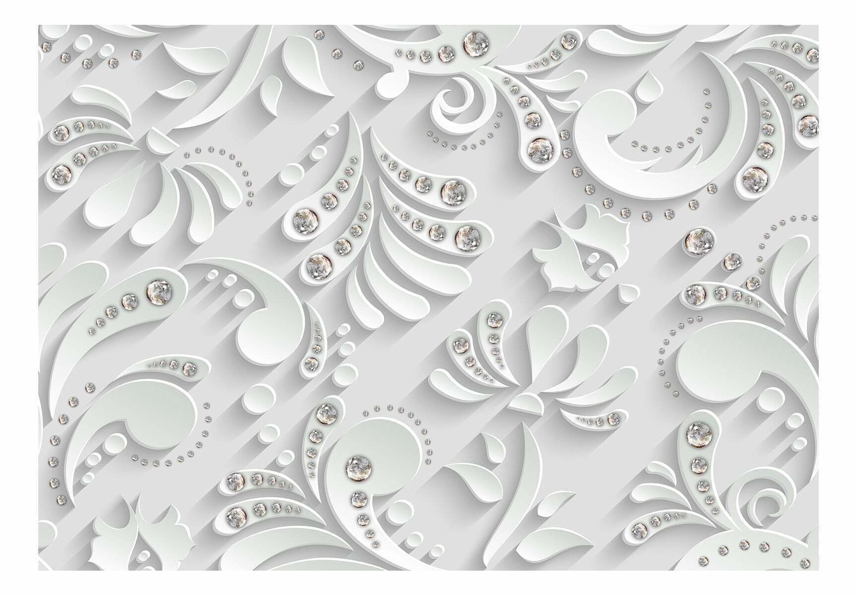 Widerstandsfähige, wasserabweisende und kratzfeste Vliestapete “Flowers with Crystals” zum Anbringen an die Wand. Fototapete “Flowers with Crystals” mit dem inspirierenden Motiv wird zum effektiven Zimmerschmuck jeden Raumes.
