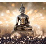 Widerstandsfähige, wasserabweisende und kratzfeste Vliestapete “Golden Enlightenment” zum Anbringen an die Wand. Fototapete “Golden Enlightenment” mit dem inspirierenden Motiv wird zum effektiven Zimmerschmuck jeden Raumes.