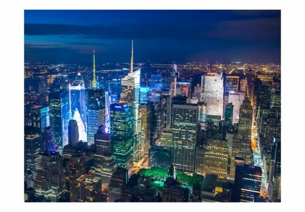 Widerstandsfähige, wasserabweisende und kratzfeste Vliestapete “Manhattan – Nacht” zum Anbringen an die Wand. Fototapete “Manhattan – Nacht” mit dem inspirierenden Motiv wird zum effektiven Zimmerschmuck jeden Raumes. Vliestapeten werden mittels Kleister an der Wand befestigt. Man kann sie in jedem Raum montieren sogar im Bad oder in der Küche. Vliestapete, halb-matte Beschichtung. 100% Vlies deckt kleine Unebenheiten der Wand ab. Sie schafft eine wärmedämmendene Isolierschicht und erlaubt den Wänden zu atmen. Wasserfester Druck ist sehr beständig.