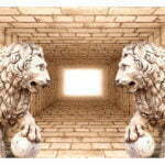 Widerstandsfähige, wasserabweisende und kratzfeste Vliestapete “Mystery of lions” zum Anbringen an die Wand. Fototapete “Mystery of lions” mit dem inspirierenden Motiv wird zum effektiven Zimmerschmuck jeden Raumes. Vliestapeten werden mittels Kleister an der Wand befestigt. Man kann sie in jedem Raum montieren sogar im Bad oder in der Küche. Vliestapete, halb-matte Beschichtung. 100% Vlies deckt kleine Unebenheiten der Wand ab. Sie schafft eine wärmedämmendene Isolierschicht und erlaubt den Wänden zu atmen. Wasserfester Druck ist sehr beständig.