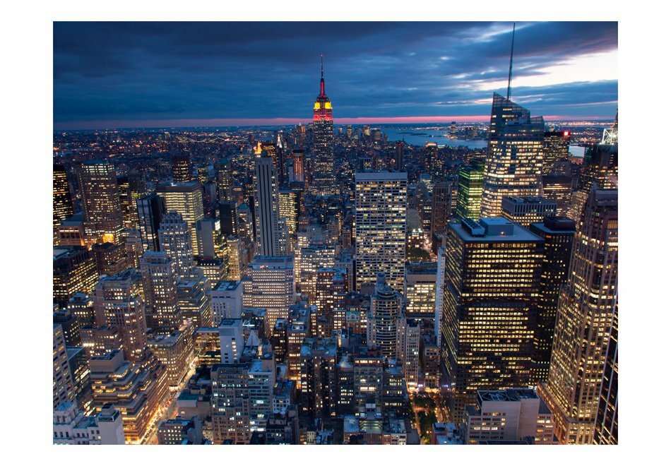 Widerstandsfähige, wasserabweisende und kratzfeste Vliestapete “New York – Nacht” zum Anbringen an die Wand. Fototapete “New York – Nacht” mit dem inspirierenden Motiv wird zum effektiven Zimmerschmuck jeden Raumes. Vliestapeten werden mittels Kleister an der Wand befestigt. Man kann sie in jedem Raum montieren sogar im Bad oder in der Küche. Vliestapete, halb-matte Beschichtung. 100% Vlies deckt kleine Unebenheiten der Wand ab. Sie schafft eine wärmedämmendene Isolierschicht und erlaubt den Wänden zu atmen. Wasserfester Druck ist sehr beständig.