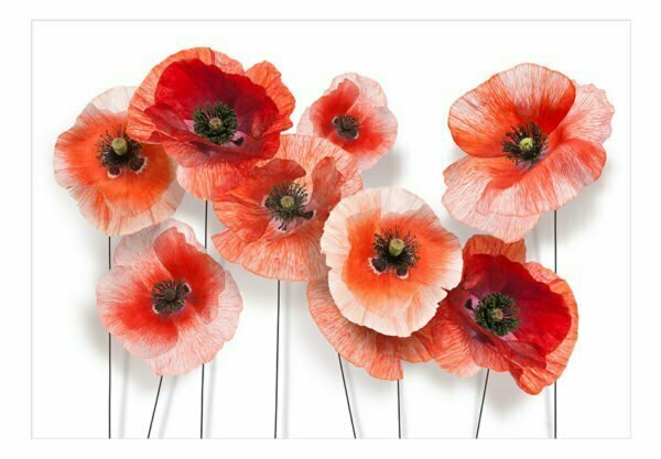 Widerstandsfähige, wasserabweisende und kratzfeste Vliestapete “Nine poppies” zum Anbringen an die Wand. Fototapete “Nine poppies” mit dem inspirierenden Motiv wird zum effektiven Zimmerschmuck jeden Raumes.