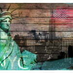 Widerstandsfähige, wasserabweisende und kratzfeste Vliestapete “NYC symbols” zum Anbringen an die Wand. Fototapete “NYC symbols” mit dem inspirierenden Motiv wird zum effektiven Zimmerschmuck jeden Raumes.