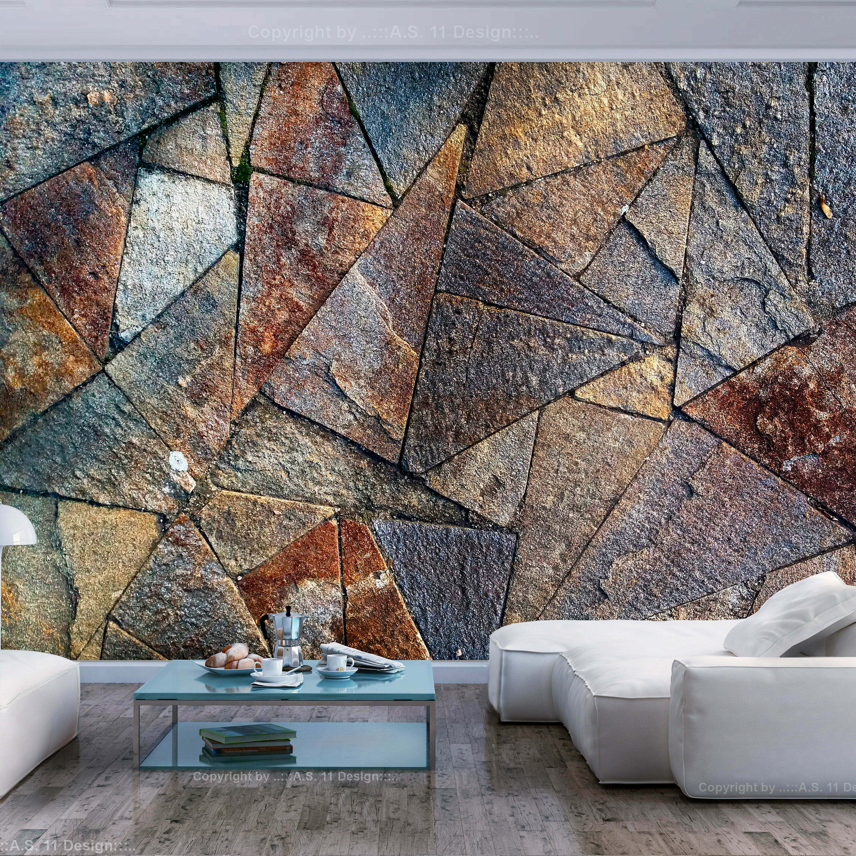 Widerstandsfähige, wasserabweisende und kratzfeste Vliestapete “Pavement Tiles (Colourful)” zum Anbringen an die Wand. Fototapete “Pavement Tiles (Colourful)” mit dem inspirierenden Motiv wird zum effektiven Zimmerschmuck jeden Raumes. Vliestapeten werden mittels Kleister an der Wand befestigt. Man kann sie in jedem Raum montieren sogar im Bad oder in der Küche. Vliestapete, halb-matte Beschichtung. 100% Vlies deckt kleine Unebenheiten der Wand ab. Sie schafft eine wärmedämmendene Isolierschicht und erlaubt den Wänden zu atmen. Wasserfester Druck ist sehr beständig.