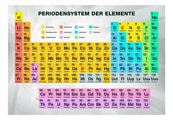 Widerstandsfähige, wasserabweisende und kratzfeste Vliestapete “Periodensystem der Elemente” zum Anbringen an die Wand. Fototapete “Periodensystem der Elemente” mit dem inspirierenden Motiv wird zum effektiven Zimmerschmuck jeden Raumes.