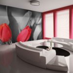 Schau Dir an wie man die “Rote Tulpen am schwarz-weißen Hintergrund” Fototapete Schritt für Schritt installieren kann.