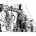 Widerstandsfähige, wasserabweisende und kratzfeste Vliestapete “Saxophone recital on Broadway” zum Anbringen an die Wand. Fototapete “Saxophone recital on Broadway” mit dem inspirierenden Motiv wird zum effektiven Zimmerschmuck jeden Raumes.