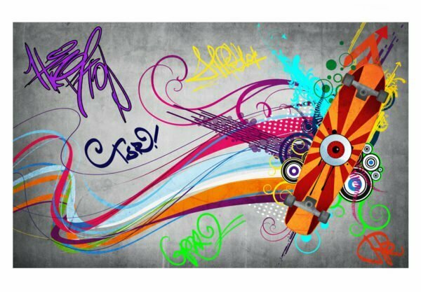 Widerstandsfähige, wasserabweisende und kratzfeste Vliestapete “Skateboard” zum Anbringen an die Wand. Fototapete “Skateboard” mit dem inspirierenden Motiv wird zum effektiven Zimmerschmuck jeden Raumes. Vliestapeten werden mittels Kleister an der Wand befestigt. Man kann sie in jedem Raum montieren sogar im Bad oder in der Küche. Vliestapete, halb-matte Beschichtung. 100% Vlies deckt kleine Unebenheiten der Wand ab. Sie schafft eine wärmedämmendene Isolierschicht und erlaubt den Wänden zu atmen. Wasserfester Druck ist sehr beständig.