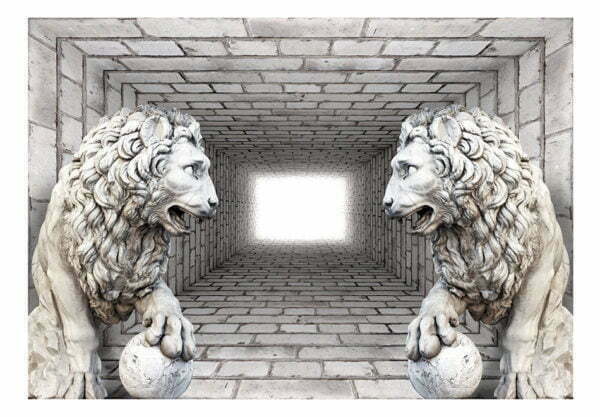 Widerstandsfähige, wasserabweisende und kratzfeste Vliestapete “Steinlöwen” zum Anbringen an die Wand. Fototapete “Steinlöwen” mit dem inspirierenden Motiv wird zum effektiven Zimmerschmuck jeden Raumes. Vliestapeten werden mittels Kleister an der Wand befestigt. Man kann sie in jedem Raum montieren sogar im Bad oder in der Küche. Vliestapete, halb-matte Beschichtung. 100% Vlies deckt kleine Unebenheiten der Wand ab. Sie schafft eine wärmedämmendene Isolierschicht und erlaubt den Wänden zu atmen. Wasserfester Druck ist sehr beständig.