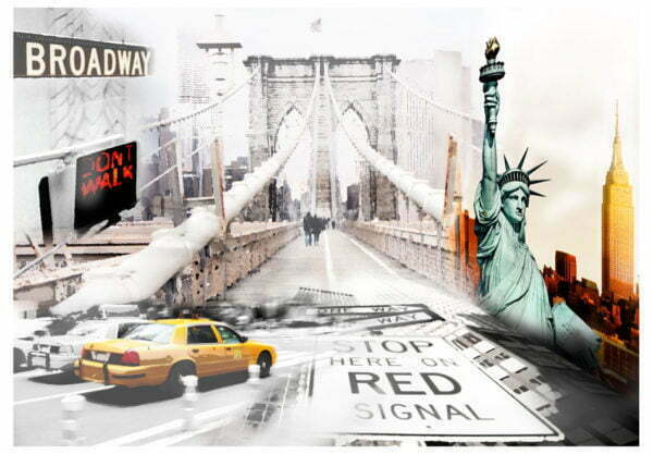 Widerstandsfähige, wasserabweisende und kratzfeste Vliestapete “Straßen von New York” zum Anbringen an die Wand. Fototapete “Straßen von New York” mit dem inspirierenden Motiv wird zum effektiven Zimmerschmuck jeden Raumes. Vliestapeten werden mittels Kleister an der Wand befestigt. Man kann sie in jedem Raum montieren sogar im Bad oder in der Küche. Vliestapete, halb-matte Beschichtung. 100% Vlies deckt kleine Unebenheiten der Wand ab. Sie schafft eine wärmedämmendene Isolierschicht und erlaubt den Wänden zu atmen. Wasserfester Druck ist sehr beständig.