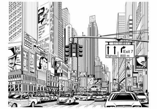 Widerstandsfähige, wasserabweisende und kratzfeste Vliestapete “Straßen von New York” zum Anbringen an die Wand. Fototapete “Straßen von New York” mit dem inspirierenden Motiv wird zum effektiven Zimmerschmuck jeden Raumes. Vliestapeten werden mittels Kleister an der Wand befestigt. Man kann sie in jedem Raum montieren sogar im Bad oder in der Küche. Vliestapete, halb-matte Beschichtung. 100% Vlies deckt kleine Unebenheiten der Wand ab. Sie schafft eine wärmedämmendene Isolierschicht und erlaubt den Wänden zu atmen. Wasserfester Druck ist sehr beständig.