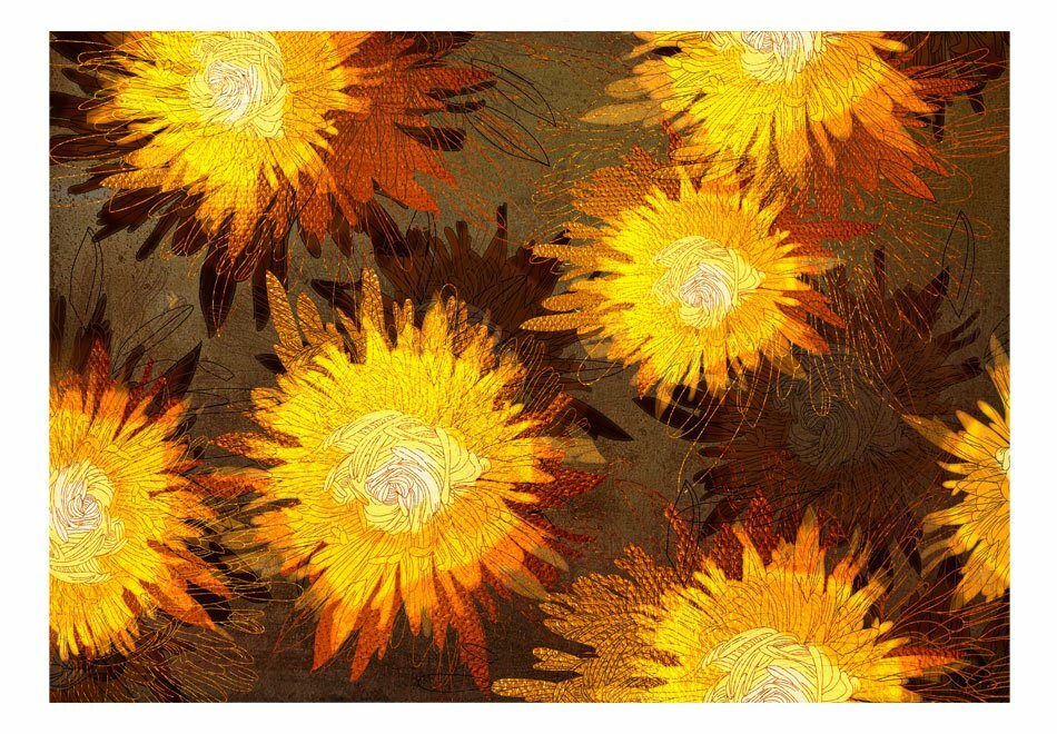 Widerstandsfähige, wasserabweisende und kratzfeste Vliestapete “Sunflower dance” zum Anbringen an die Wand. Fototapete “Sunflower dance” mit dem inspirierenden Motiv wird zum effektiven Zimmerschmuck jeden Raumes.