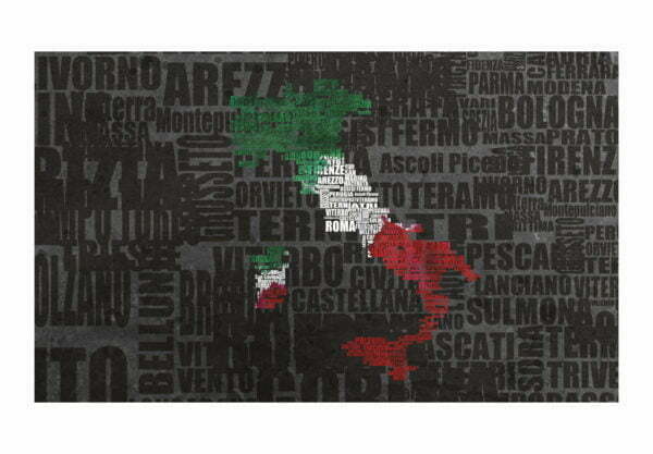 Widerstandsfähige, wasserabweisende und kratzfeste Vliestapete “Text map of Italy” zum Anbringen an die Wand. Fototapete “Text map of Italy” mit dem inspirierenden Motiv wird zum effektiven Zimmerschmuck jeden Raumes. Vliestapeten werden mittels Kleister an der Wand befestigt. Man kann sie in jedem Raum montieren sogar im Bad oder in der Küche. Vliestapete, halb-matte Beschichtung. 100% Vlies deckt kleine Unebenheiten der Wand ab. Sie schafft eine wärmedämmendene Isolierschicht und erlaubt den Wänden zu atmen. Wasserfester Druck ist sehr beständig.