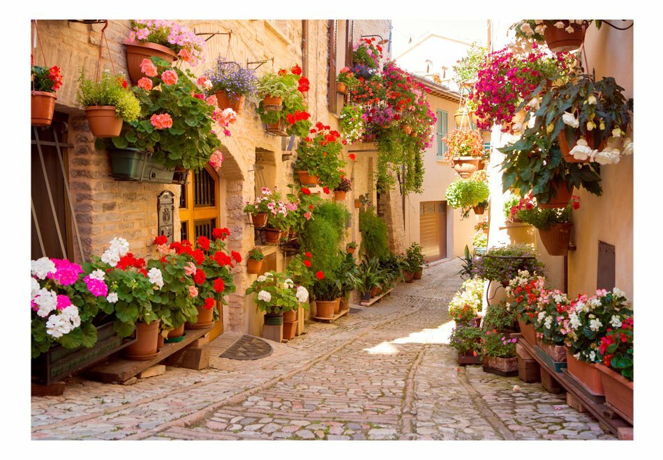 Widerstandsfähige, wasserabweisende und kratzfeste Vliestapete “The Alley in Spello (Italy)” zum Anbringen an die Wand. Fototapete “The Alley in Spello (Italy)” mit dem inspirierenden Motiv wird zum effektiven Zimmerschmuck jeden Raumes. Vliestapeten werden mittels Kleister an der Wand befestigt. Man kann sie in jedem Raum montieren sogar im Bad oder in der Küche. Vliestapete, halb-matte Beschichtung. 100% Vlies deckt kleine Unebenheiten der Wand ab. Sie schafft eine wärmedämmendene Isolierschicht und erlaubt den Wänden zu atmen. Wasserfester Druck ist sehr beständig.