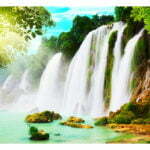 Widerstandsfähige, wasserabweisende und kratzfeste Vliestapete “The beauty of nature: Waterfall” zum Anbringen an die Wand. Fototapete “The beauty of nature: Waterfall” mit dem inspirierenden Motiv wird zum effektiven Zimmerschmuck jeden Raumes. Vliestapeten werden mittels Kleister an der Wand befestigt. Man kann sie in jedem Raum montieren sogar im Bad oder in der Küche. Vliestapete, halb-matte Beschichtung. 100% Vlies deckt kleine Unebenheiten der Wand ab. Sie schafft eine wärmedämmendene Isolierschicht und erlaubt den Wänden zu atmen. Wasserfester Druck ist sehr beständig.