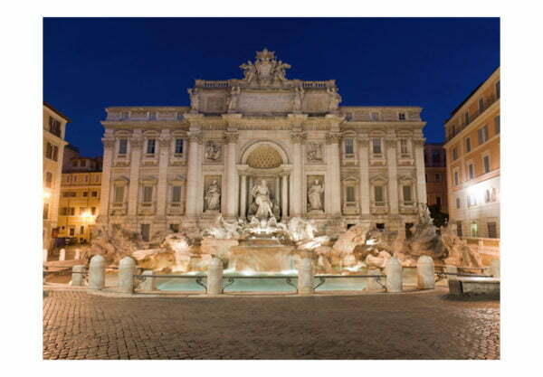 Widerstandsfähige, wasserabweisende und kratzfeste Vliestapete “Trevi-Brunnen – Rom” zum Anbringen an die Wand. Fototapete “Trevi-Brunnen – Rom” mit dem inspirierenden Motiv wird zum effektiven Zimmerschmuck jeden Raumes. Vliestapeten werden mittels Kleister an der Wand befestigt. Man kann sie in jedem Raum montieren sogar im Bad oder in der Küche. Vliestapete, halb-matte Beschichtung. 100% Vlies deckt kleine Unebenheiten der Wand ab. Sie schafft eine wärmedämmendene Isolierschicht und erlaubt den Wänden zu atmen. Wasserfester Druck ist sehr beständig.