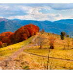 Widerstandsfähige, wasserabweisende und kratzfeste Vliestapete “Warme Herbstlandschaft” zum Anbringen an die Wand. Fototapete “Warme Herbstlandschaft” mit dem inspirierenden Motiv wird zum effektiven Zimmerschmuck jeden Raumes.