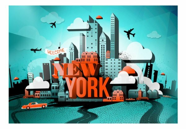 Widerstandsfähige, wasserabweisende und kratzfeste Vliestapete “Welcome New York” zum Anbringen an die Wand. Fototapete “Welcome New York” mit dem inspirierenden Motiv wird zum effektiven Zimmerschmuck jeden Raumes. Vliestapeten werden mittels Kleister an der Wand befestigt. Man kann sie in jedem Raum montieren sogar im Bad oder in der Küche. Vliestapete, halb-matte Beschichtung. 100% Vlies deckt kleine Unebenheiten der Wand ab. Sie schafft eine wärmedämmendene Isolierschicht und erlaubt den Wänden zu atmen. Wasserfester Druck ist sehr beständig.