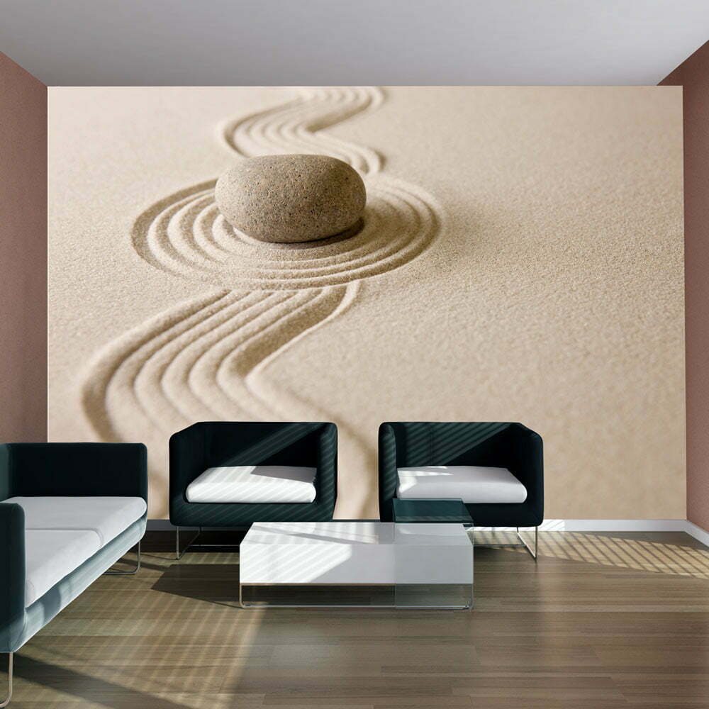 Widerstandsfähige, wasserabweisende und kratzfeste Vliestapete “Zen sand garden” zum Anbringen an die Wand. Fototapete “Zen sand garden” mit dem inspirierenden Motiv wird zum effektiven Zimmerschmuck jeden Raumes.