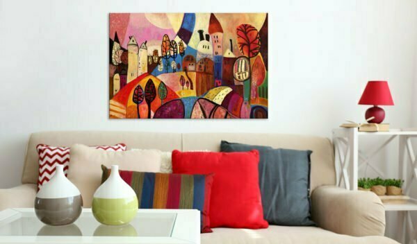 Das handgemalte Bild “Buntes Dorf ” ist eine Verbindung von hoher Qualität und Einzigartigkeit. Jedes handgemalte Bild wird von erfahrenen Malern für die individuelle Bestellung des Kunden erschaffen. Dank dem einzigartigen Stil der Pinselstriche des Künstlers haben gemalte Bilder einen einzigartigen Charakter. Wenn Du ein besonderes Schmuckstück für Deine Wohnung oder Büro suchst, dann sind die auf Leinwand handgemalten Bilder eine ideale Ergänzung des Arrangements Deiner Innenausstattung. Insbesondere, wenn Dein Salon, Schlafzimmer oder Büro in ähnlicher Stilistik gehalten wird.
