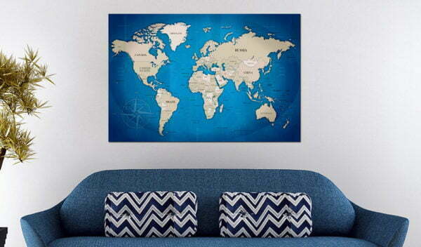 Pinnwand Bild “Dark Blue Trail [Cork Map]” ist ein Produkt für Personen die originelle Schmuckstücke für die Wand suchen. Ökologisches Material und interessantes Muster “Dark Blue Trail [Cork Map]” verursachen, dass die einfache Korktafel sich in ein stilvolles Accessoire verändert. Zu den Bildern auf Korken kann man Reißzwecken anheften und die besuchten Orte auf der Landkarte markieren oder Notizen anheften. Das Bild “Dark Blue Trail [Cork Map]” auf Kork ist viel leichter als die traditionellen Wanddekorationen. Dank dem können die dekorativen Korktafeln an jedem Platz in Deiner Wohnung oder Büro gehängt werden. Die Leinwand mit dem Ausdruck wird auf die Korktafel angebracht. Dank dem, charakterisiert sich der Aufdruck mit deutlichen Farben und gibt kleinste Details wieder. Stecke die Reißzwecken oder Notizen an und kreire Dein individuelles Muster auf Deiner Wand! Die Korklandkarte ist eine exzellente Idee als Geschenk für Reiseliebhaber!