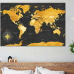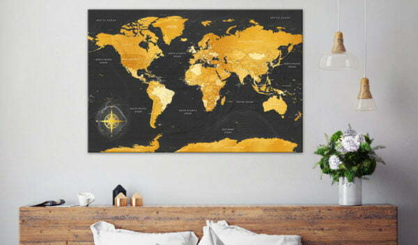 Pinnwand Bild “Golden World [Cork Map]” ist ein Produkt für Personen die originelle Schmuckstücke für die Wand suchen. Ökologisches Material und interessantes Muster “Golden World [Cork Map]” verursachen, dass die einfache Korktafel sich in ein stilvolles Accessoire verändert. Zu den Bildern auf Korken kann man Reißzwecken anheften und die besuchten Orte auf der Landkarte markieren oder Notizen anheften. Das Bild “Golden World [Cork Map]” auf Kork ist viel leichter als die traditionellen Wanddekorationen. Dank dem können die dekorativen Korktafeln an jedem Platz in Deiner Wohnung oder Büro gehängt werden. Die Leinwand mit dem Ausdruck wird auf die Korktafel angebracht. Dank dem, charakterisiert sich der Aufdruck mit deutlichen Farben und gibt kleinste Details wieder. Stecke die Reißzwecken oder Notizen an und kreire Dein individuelles Muster auf Deiner Wand! Die Korklandkarte ist eine exzellente Idee als Geschenk für Reiseliebhaber!