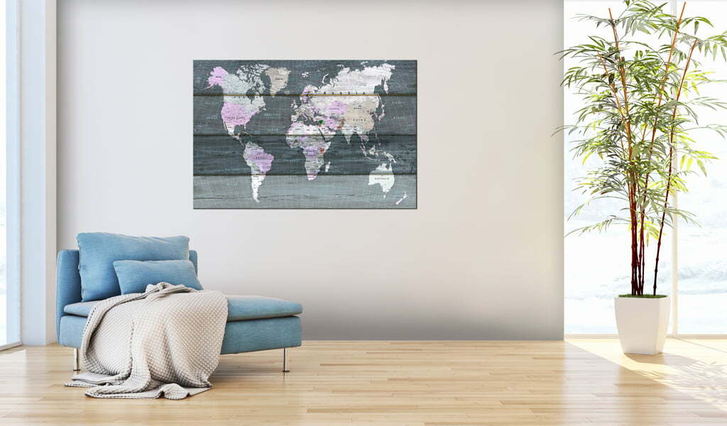 Pinnwand Bild “Journey through the World [Cork Map]” ist ein Produkt für Personen die originelle Schmuckstücke für die Wand suchen. Ökologisches Material und interessantes Muster “Journey through the World [Cork Map]” verursachen, dass die einfache Korktafel sich in ein stilvolles Accessoire verändert. Zu den Bildern auf Korken kann man Reißzwecken anheften und die besuchten Orte auf der Landkarte markieren oder Notizen anheften. Das Bild “Journey through the World [Cork Map]” auf Kork ist viel leichter als die traditionellen Wanddekorationen. Dank dem können die dekorativen Korktafeln an jedem Platz in Deiner Wohnung oder Büro gehängt werden. Die Leinwand mit dem Ausdruck wird auf die Korktafel angebracht. Dank dem, charakterisiert sich der Aufdruck mit deutlichen Farben und gibt kleinste Details wieder. Stecke die Reißzwecken oder Notizen an und kreire Dein individuelles Muster auf Deiner Wand! Die Korklandkarte ist eine exzellente Idee als Geschenk für Reiseliebhaber!