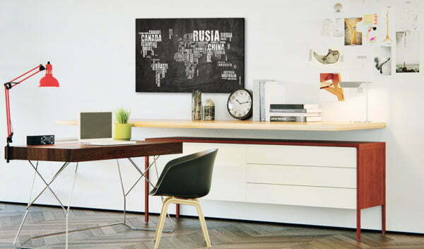 Pinnwand Bild “Mundo Negro [Cork Map]” ist ein Produkt für Personen die originelle Schmuckstücke für die Wand suchen. Ökologisches Material und interessantes Muster “Mundo Negro [Cork Map]” verursachen, dass die einfache Korktafel sich in ein stilvolles Accessoire verändert. Zu den Bildern auf Korken kann man Reißzwecken anheften und die besuchten Orte auf der Landkarte markieren oder Notizen anheften. Das Bild “Mundo Negro [Cork Map]” auf Kork ist viel leichter als die traditionellen Wanddekorationen. Dank dem können die dekorativen Korktafeln an jedem Platz in Deiner Wohnung oder Büro gehängt werden. Die Leinwand mit dem Ausdruck wird auf die Korktafel angebracht. Dank dem, charakterisiert sich der Aufdruck mit deutlichen Farben und gibt kleinste Details wieder. Stecke die Reißzwecken oder Notizen an und kreire Dein individuelles Muster auf Deiner Wand! Die Korklandkarte ist eine exzellente Idee als Geschenk für Reiseliebhaber!
