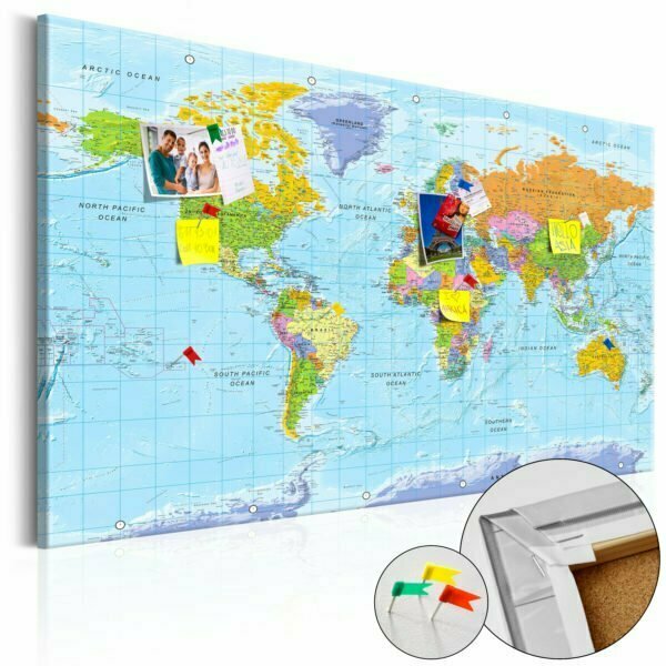 Pinnwand Bild “Orbis Terrarum [Cork Map]” ist ein Produkt für Personen die originelle Schmuckstücke für die Wand suchen. Ökologisches Material und interessantes Muster “Orbis Terrarum [Cork Map]” verursachen, dass die einfache Korktafel sich in ein stilvolles Accessoire verändert. Zu den Bildern auf Korken kann man Reißzwecken anheften und die besuchten Orte auf der Landkarte markieren oder Notizen anheften. Das Bild “Orbis Terrarum [Cork Map]” auf Kork ist viel leichter als die traditionellen Wanddekorationen. Dank dem können die dekorativen Korktafeln an jedem Platz in Deiner Wohnung oder Büro gehängt werden. Die Leinwand mit dem Ausdruck wird auf die Korktafel angebracht. Dank dem, charakterisiert sich der Aufdruck mit deutlichen Farben und gibt kleinste Details wieder. Stecke die Reißzwecken oder Notizen an und kreire Dein individuelles Muster auf Deiner Wand! Die Korklandkarte ist eine exzellente Idee als Geschenk für Reiseliebhaber!