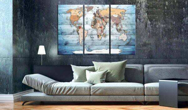 Pinnwand Bild “Sapphire Travels [Cork Map]” ist ein Produkt für Personen die originelle Schmuckstücke für die Wand suchen. Ökologisches Material und interessantes Muster “Sapphire Travels [Cork Map]” verursachen, dass die einfache Korktafel sich in ein stilvolles Accessoire verändert. Zu den Bildern auf Korken kann man Reißzwecken anheften und die besuchten Orte auf der Landkarte markieren oder Notizen anheften. Das Bild “Sapphire Travels [Cork Map]” auf Kork ist viel leichter als die traditionellen Wanddekorationen. Dank dem können die dekorativen Korktafeln an jedem Platz in Deiner Wohnung oder Büro gehängt werden. Die Leinwand mit dem Ausdruck wird auf die Korktafel angebracht. Dank dem, charakterisiert sich der Aufdruck mit deutlichen Farben und gibt kleinste Details wieder. Stecke die Reißzwecken oder Notizen an und kreire Dein individuelles Muster auf Deiner Wand! Die Korklandkarte ist eine exzellente Idee als Geschenk für Reiseliebhaber!