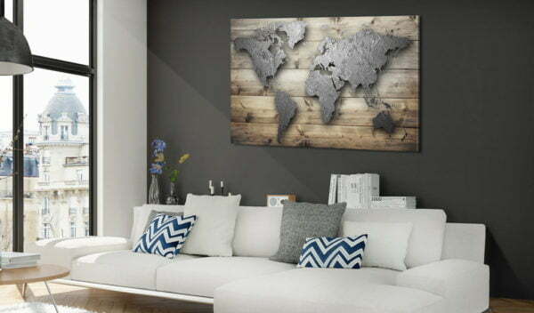 Pinnwand Bild “Silver World [Cork Map]” ist ein Produkt für Personen die originelle Schmuckstücke für die Wand suchen. Ökologisches Material und interessantes Muster “Silver World [Cork Map]” verursachen, dass die einfache Korktafel sich in ein stilvolles Accessoire verändert. Zu den Bildern auf Korken kann man Reißzwecken anheften und die besuchten Orte auf der Landkarte markieren oder Notizen anheften. Das Bild “Silver World [Cork Map]” auf Kork ist viel leichter als die traditionellen Wanddekorationen. Dank dem können die dekorativen Korktafeln an jedem Platz in Deiner Wohnung oder Büro gehängt werden. Die Leinwand mit dem Ausdruck wird auf die Korktafel angebracht. Dank dem, charakterisiert sich der Aufdruck mit deutlichen Farben und gibt kleinste Details wieder. Stecke die Reißzwecken oder Notizen an und kreire Dein individuelles Muster auf Deiner Wand! Die Korklandkarte ist eine exzellente Idee als Geschenk für Reiseliebhaber!