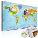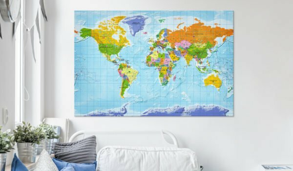 Pinnwand Bild “World Map: Countries Flags [Cork Map]” ist ein Produkt für Personen die originelle Schmuckstücke für die Wand suchen. Ökologisches Material und interessantes Muster “World Map: Countries Flags [Cork Map]” verursachen, dass die einfache Korktafel sich in ein stilvolles Accessoire verändert. Zu den Bildern auf Korken kann man Reißzwecken anheften und die besuchten Orte auf der Landkarte markieren oder Notizen anheften. Das Bild “World Map: Countries Flags [Cork Map]” auf Kork ist viel leichter als die traditionellen Wanddekorationen. Dank dem können die dekorativen Korktafeln an jedem Platz in Deiner Wohnung oder Büro gehängt werden. Die Leinwand mit dem Ausdruck wird auf die Korktafel angebracht. Dank dem, charakterisiert sich der Aufdruck mit deutlichen Farben und gibt kleinste Details wieder. Stecke die Reißzwecken oder Notizen an und kreire Dein individuelles Muster auf Deiner Wand! Die Korklandkarte ist eine exzellente Idee als Geschenk für Reiseliebhaber!