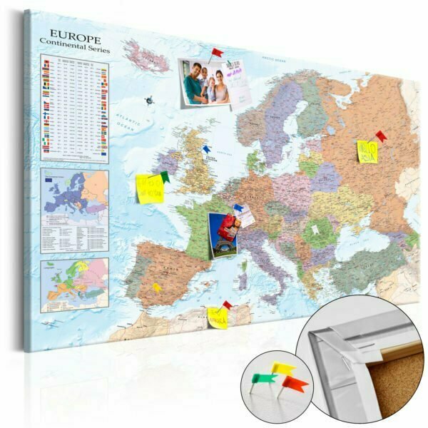Pinnwand Bild “World Maps: Europe [Cork Map]” ist ein Produkt für Personen die originelle Schmuckstücke für die Wand suchen. Ökologisches Material und interessantes Muster “World Maps: Europe [Cork Map]” verursachen, dass die einfache Korktafel sich in ein stilvolles Accessoire verändert. Zu den Bildern auf Korken kann man Reißzwecken anheften und die besuchten Orte auf der Landkarte markieren oder Notizen anheften. Das Bild “World Maps: Europe [Cork Map]” auf Kork ist viel leichter als die traditionellen Wanddekorationen. Dank dem können die dekorativen Korktafeln an jedem Platz in Deiner Wohnung oder Büro gehängt werden. Die Leinwand mit dem Ausdruck wird auf die Korktafel angebracht. Dank dem, charakterisiert sich der Aufdruck mit deutlichen Farben und gibt kleinste Details wieder. Stecke die Reißzwecken oder Notizen an und kreire Dein individuelles Muster auf Deiner Wand! Die Korklandkarte ist eine exzellente Idee als Geschenk für Reiseliebhaber!
